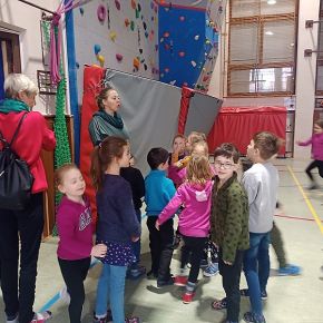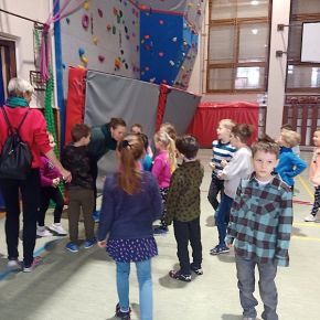 Děti z mateřské školy byly na návštěvě v naší ZŠ v prvních třídách a navštívily také koncertní sál a viděly lezeckou stěnu, moc se jim u nás líbilo. V.M.