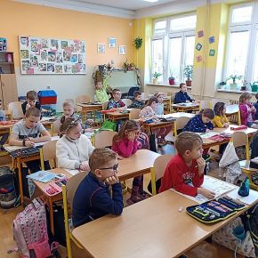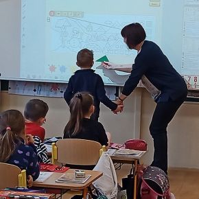 Děti z mateřské školy byly na návštěvě v naší ZŠ v prvních třídách a navštívily také koncertní sál a viděly lezeckou stěnu, moc se jim u nás líbilo. V.M.
