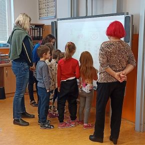 Děti z mateřské školy byly na návštěvě v naší ZŠ v prvních třídách a navštívily také koncertní sál a viděly lezeckou stěnu, moc se jim u nás líbilo. V.M.
