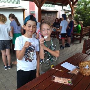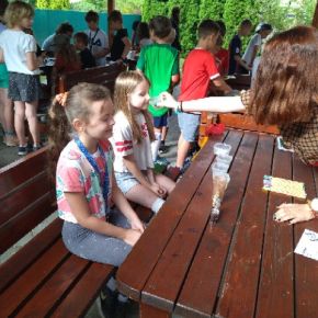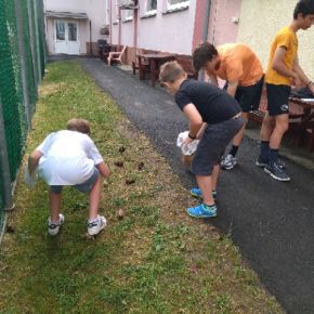 Žáci devátého ročníku si pro své mladší spolužáky připravili úkoly s ekologickou tématikou v prostorách školní zahrady.