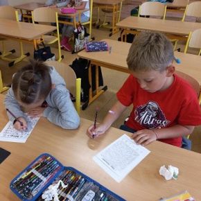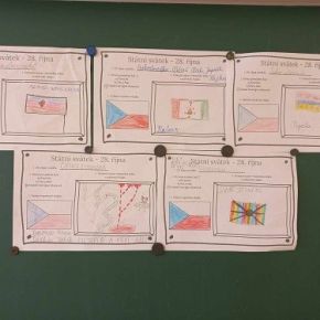 Říjnu jsme v oddělení stihli mnoho aktivit. Vyráběli jsme na Halloween strašidelné výrobky, povídali jsem si o podzimu a hráli hry s podzimní tematikou. Připomněli a vysvětlili jsme si svátek 28. října. Děti pracovaly ve skupinách a měly za úkol vypracovat jednoduché otázky, a nakonec společně vytvořit svůj vlastní stát a vlajku.