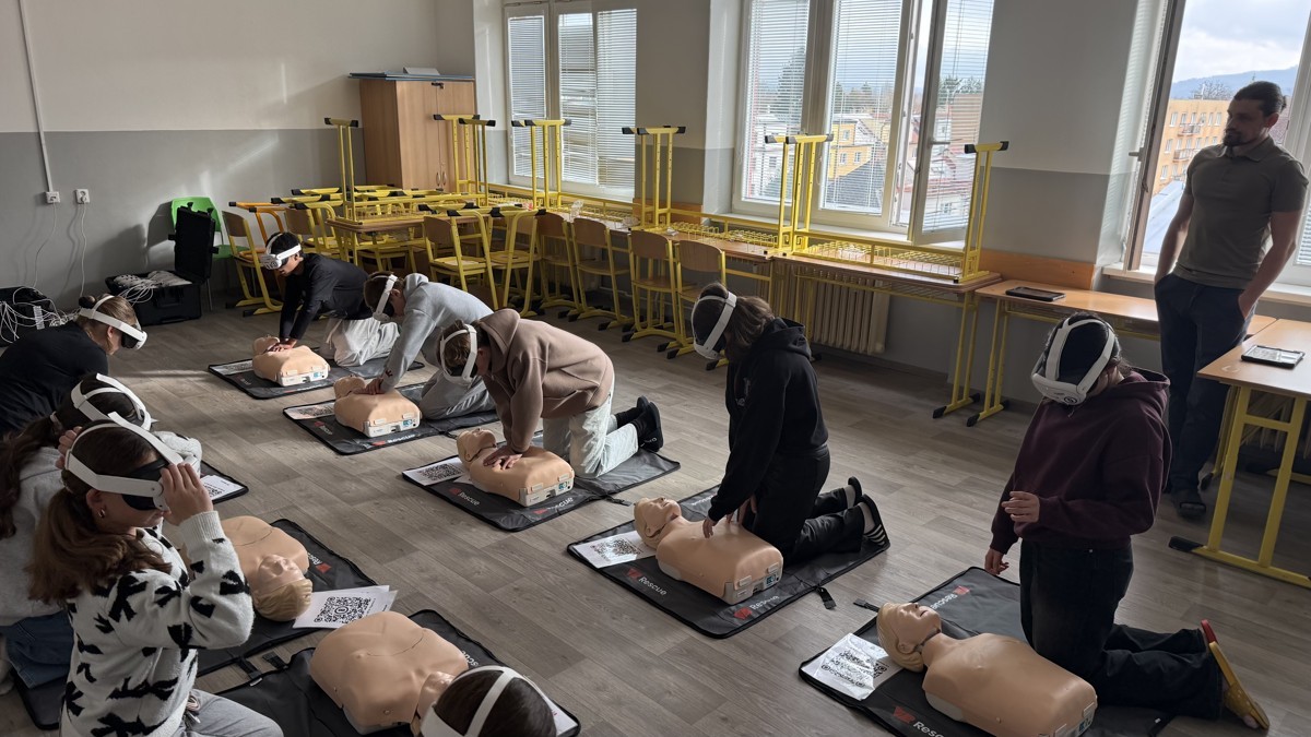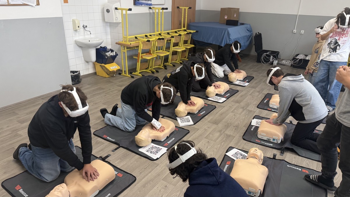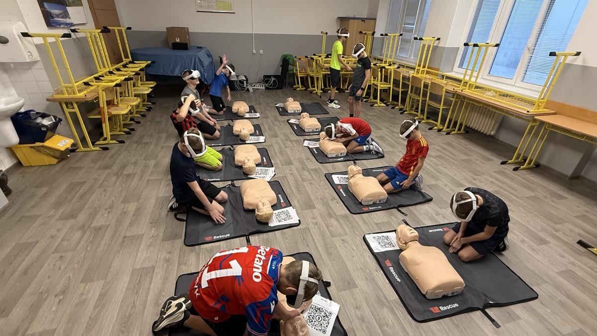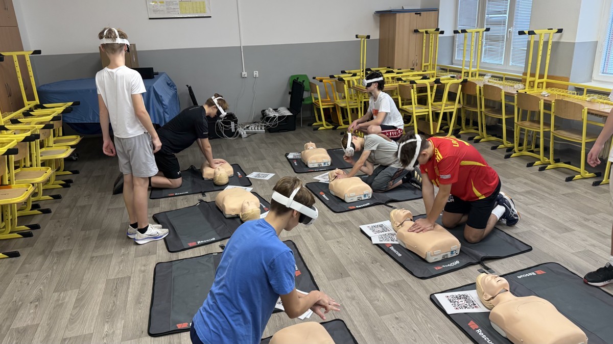 Akce VR Rescue byla zaměřena na výuku první pomoci prostřednictvím virtuální reality. Žáci druhého stupně si vyzkoušeli realistické scénáře, kde je VR technologie vedla krok za krokem, jak správně reagovat při záchraně života. Program byl interaktivní, zábavný a zároveň velmi poučný – žáci získali praktické dovednosti, které mohou využít v reálných situacích.